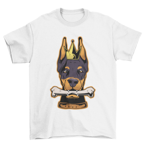 Great t-shirt design that includes an illustration of a dobermann's head with a crown.