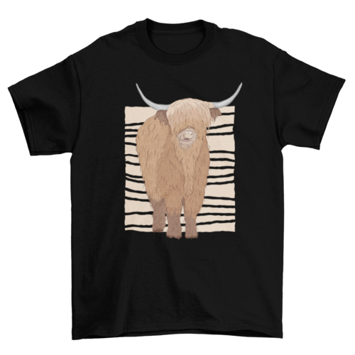 Cool t-shirt design featuring an illustration of a scottish highland cow.
